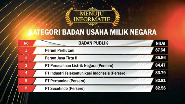 Pada acara yang dihadiri Wakil Presiden RI, Ma’ruf Amin tersebut diumumkan, Sucofindo bersama sepuluh BUMN peraih nilai terbaik lainnya pada kategori Badan Publik BUMN, mendapatkan nilai meningkat dari tahun lalu menjadi 82.56. Sucofindo sendiri saat ini, dinakhodai salah satu putra terbaik Sulsel, Bachder Djohan Buddin.
