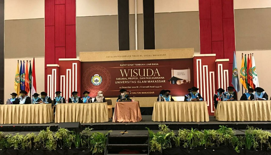 PLUZ.ID, MAKASSAR – Universitas Islam Makassar (UIM) melaksanakan wisuda untuk sarjana, profesi, dan pasca sarjana di Hotel Dalton Makassar, Senin (21/12/2020). Pelaksanaan wisuda 539 periode II UIM dilaksanakan dengan protokol kesehatan Covid-19 secara ketat, termasuk rapid test sebelum memasuki lokasi acara.