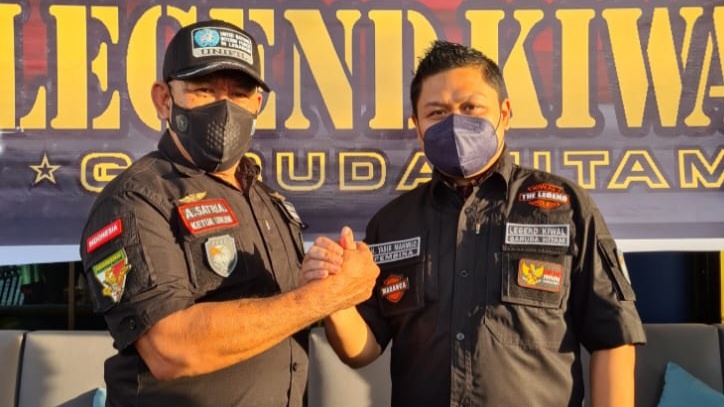 Pembina Legend Kiwal Garuda Hitam Yasir Mahmud (kanan) bersama Ketua Umum Legend Kiwal Garuda Hitam A Satria Hamzah. foto: istimewa