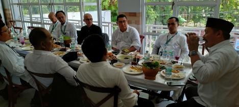 SILATURAHMI. Suasana silaturahmi antara jajaran Kanwil VI PT Pegadaian Makassar dengan Kanwil Kemenag Provinsi Sulsel di salah satu rumah makan di Kota Makassar, Selasa (25/1/2022). foto: istimewa