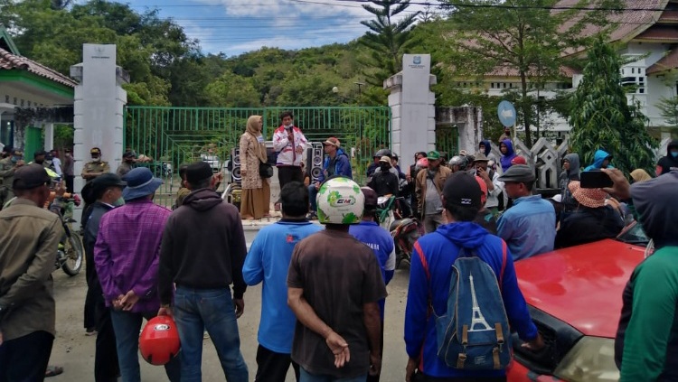 Namun, Muslimin Bando enggan menemui warga. Perwakilan bupati yang terdiri dari Asisten 1, Asisten 2, Kabag Hukum, dan Kabag Pemerintahan menyampaikan bupati saat ini sedang ada urusan di tempat lain.