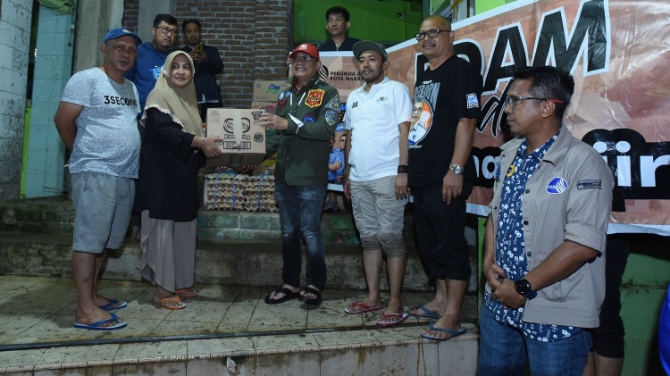 Direktur Utama Perumda Air Minum Kota Makassar Beni Iskandar, yang juga sebagai Ketua Tim Peduli Bencana bersama Direktur IPAL Aiman Adnan dan beberapa pejabat lainnya mengunjungi tiga Posko bencana, Jumat (18/11/2022) malam.