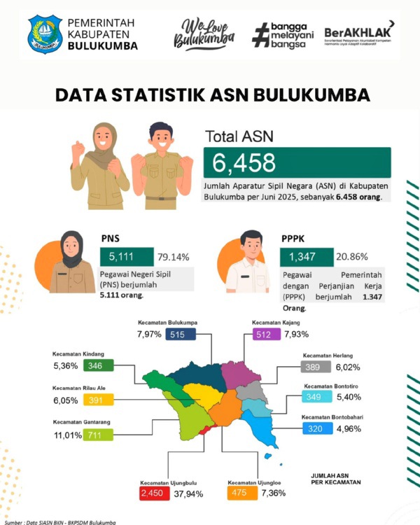 PLUZ.ID, BULUKUMBA – Pemerintah Kabupaten (Pemkab) Bulukumba melalui Badan Kepegawaian dan Pengembangan Sumber Daya Manusia (BKPSDM) merilis Data Statistik terkait Aparatur Sipil Negara (ASN).